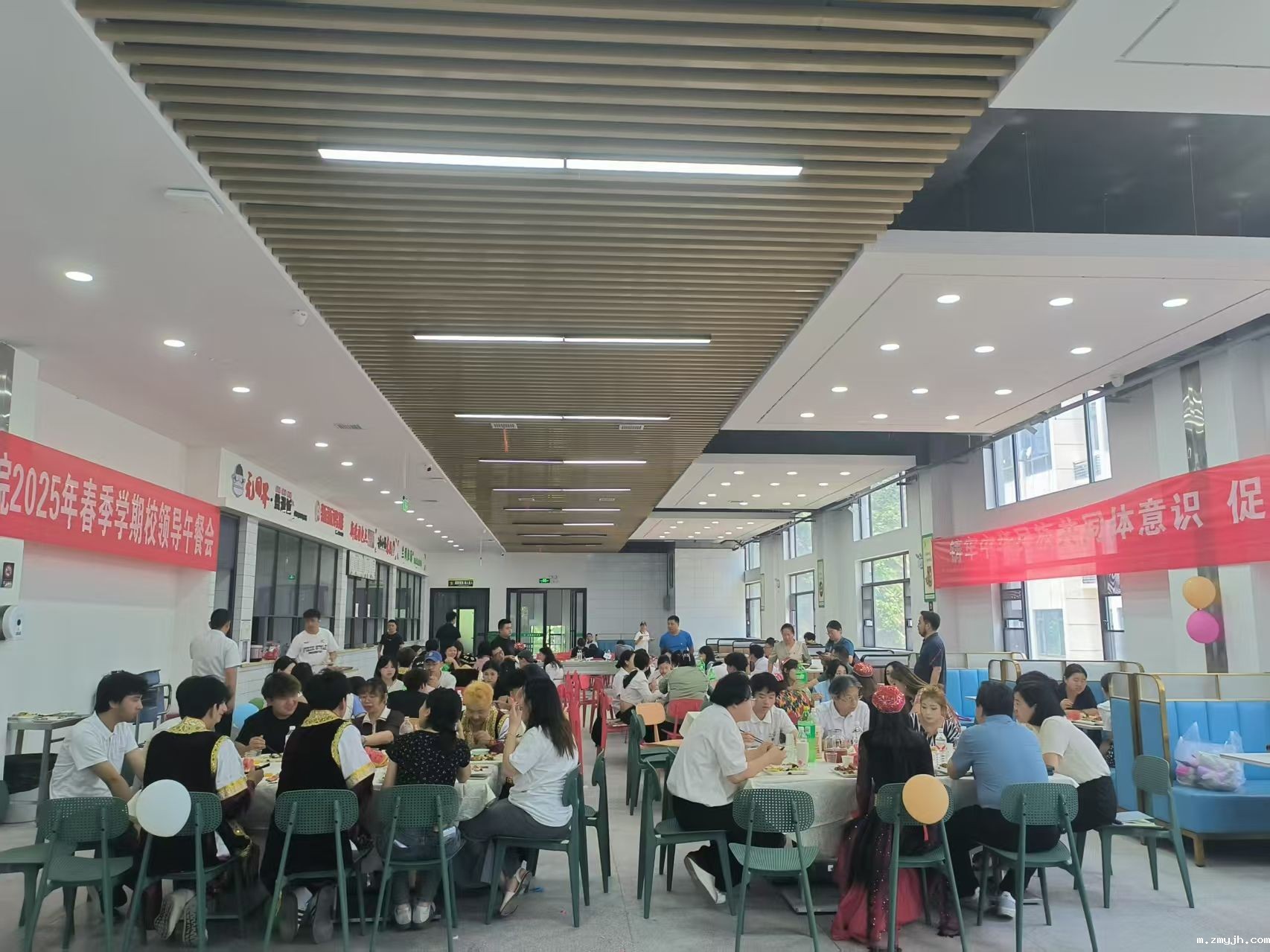 午餐会上,师生们围坐用餐,学校精心准备的特色美食让现场暖意融融。陈鸿俊书记关切询问“西部计划”志愿者代表、应征入伍毕业生代表的学业、职业发展规划等情况,勉励同学们发挥专业特长,扎根西部,投身军营,将“小我”成长融入“大我”奋斗,实现理想抱负。夏能权观看着新疆籍学生手机里的设计作品,了解他们的学习生活情况,鼓励他们克服语言文化差异,学好专业,练好本领,在美院这个大家庭共同成长。