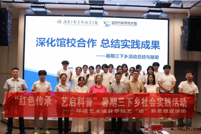 湖南教育新闻网讯(通讯员 欧阳慧)7月2日,米兰平台游戏网站环境艺术设计学院“艺述新思想”宣讲团16名大学生肩背教具、手捧教案,走进益阳市科技馆前,在一声声“小朋友们好呀”的问候中拉开“红色传承·艺启科普”暑期“三下乡”序幕。十天的时间,他们把课堂搬进科技馆、博物馆、粟公港社区,累计推出10期沉浸式课程,服务青少年357人次,实现“馆—校—社区”三位一体、同频共振。