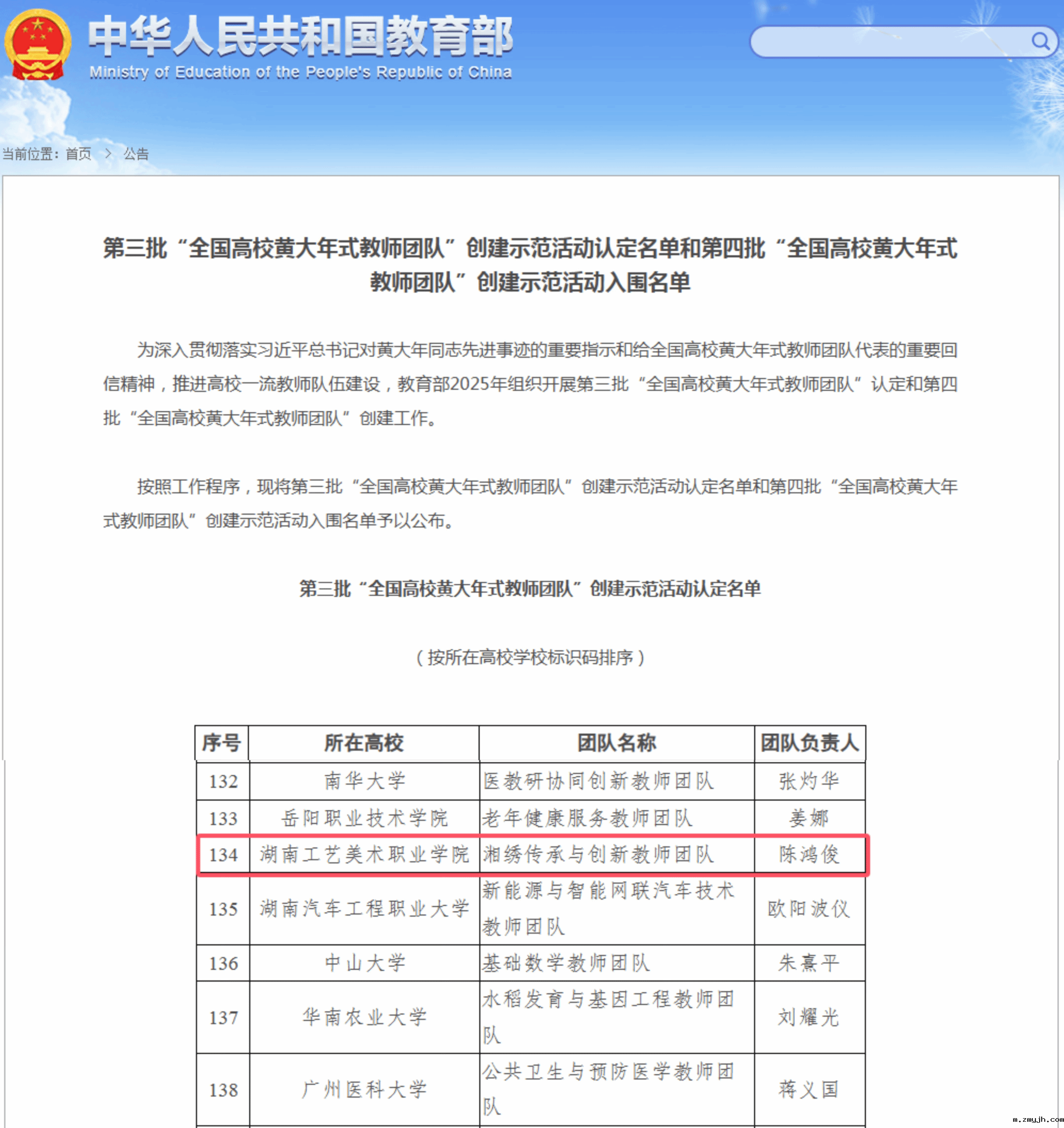 我校“湘绣传承与创新教师团队”成功认定为第三...